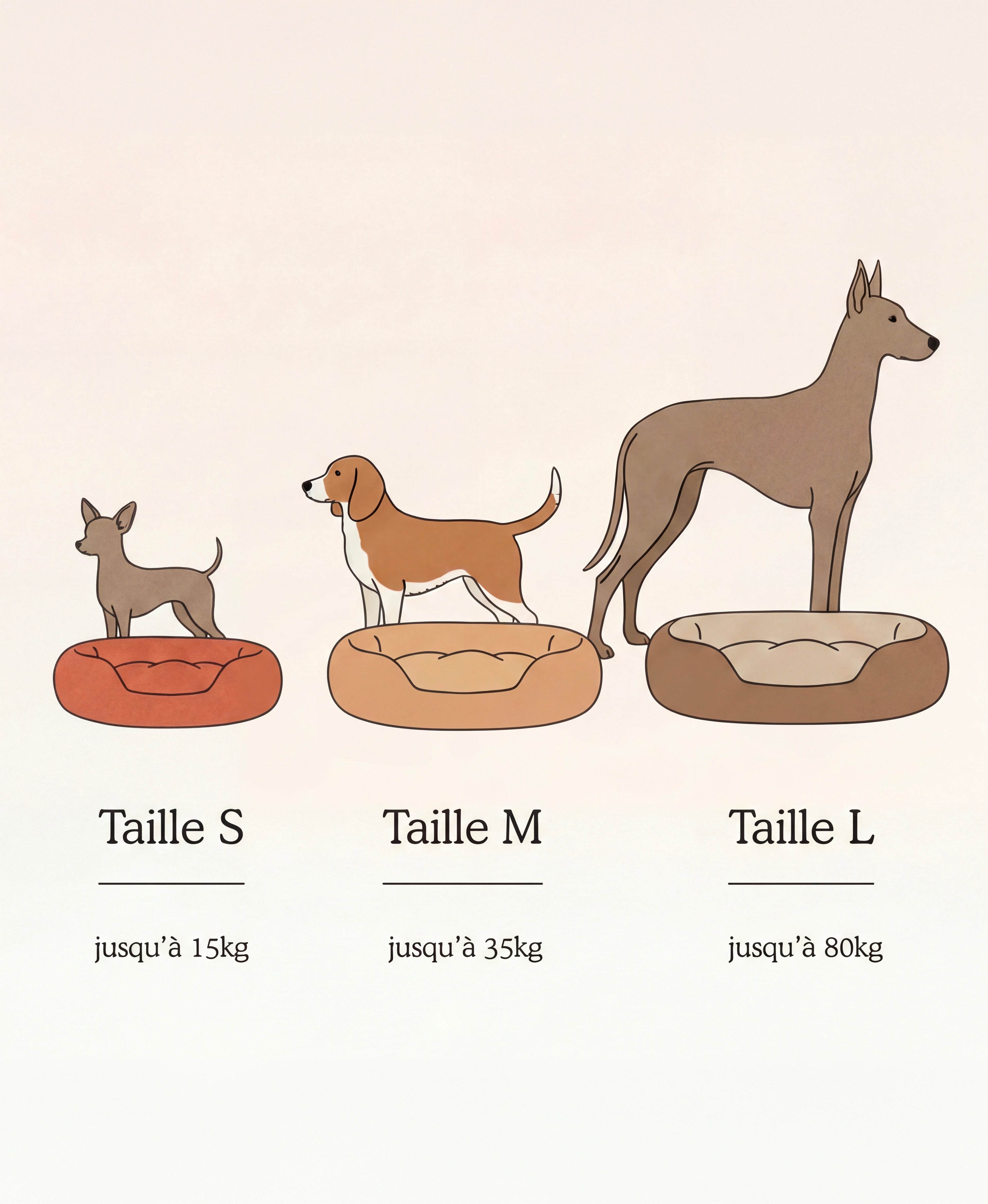 - Taille L (115 × 85 cm) : grands chiens ou deux petits compagnons.