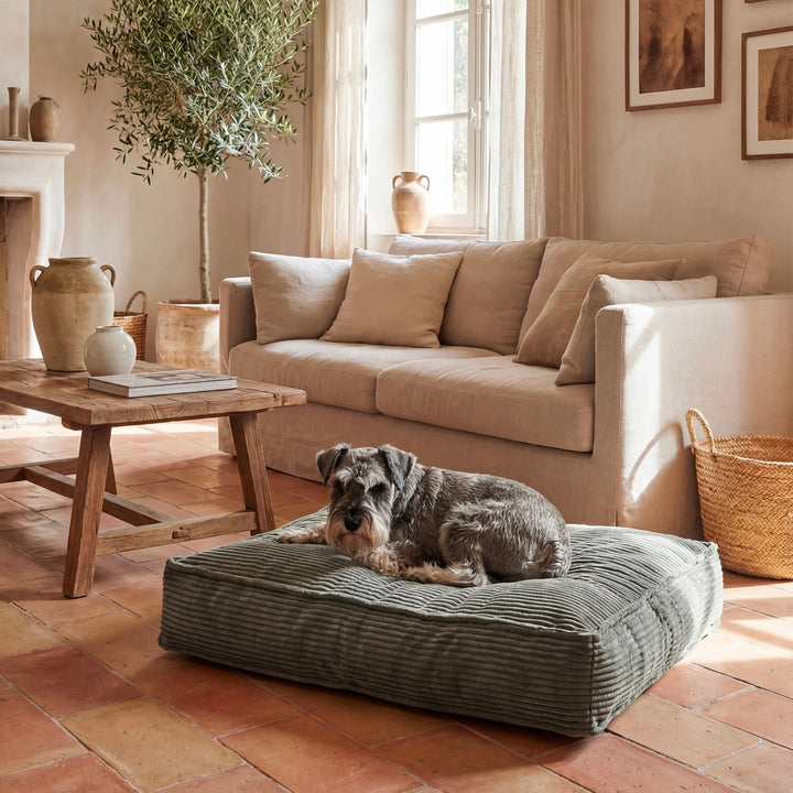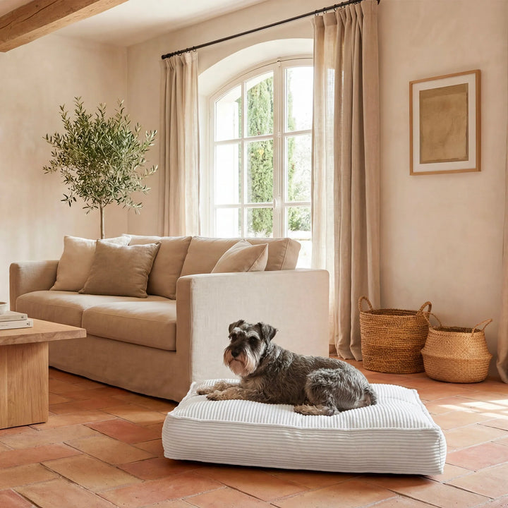 Pensé pour le bien-être, le NESTO offre un soutien optimal grâce à ses options de rembourrage, allant de la fibre polyester à la mousse mémoire de forme pour un confort maximal, notamment pour les chiens sensibles, seniors ou sujets aux douleurs articulaires. Sa confection sur mesure, ses finitions soignées et son style sobre en font un couchage durable, esthétique et parfaitement adapté au quotidien.